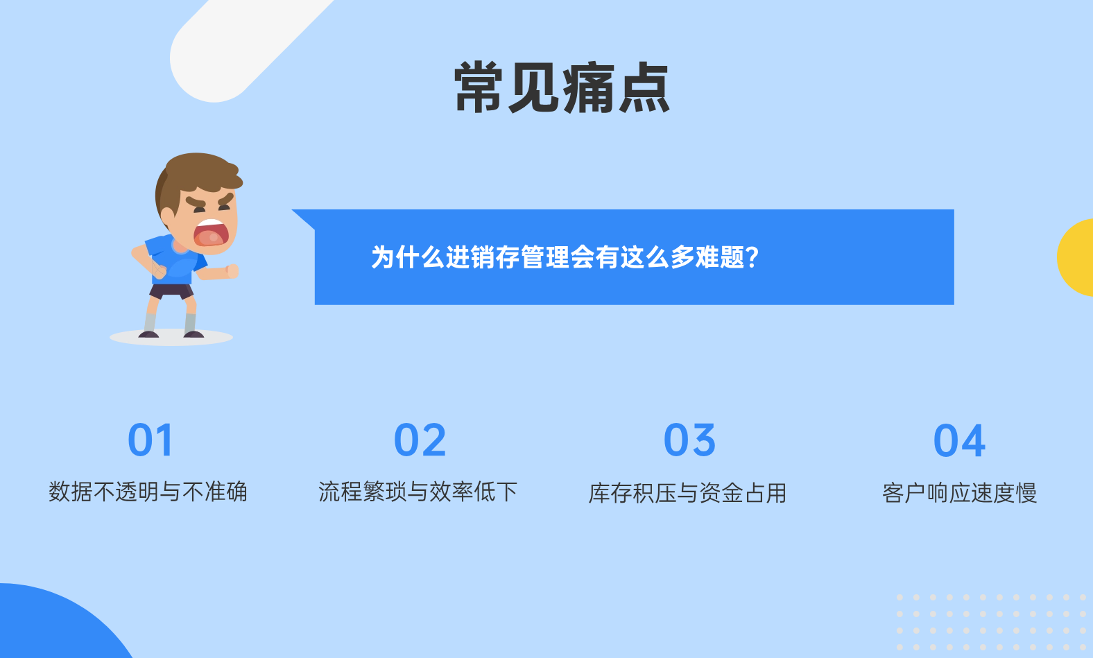 进销存作为企业运营中的重要环节,常常面临一些难点,往往会影响企业的运营效率和管理水平。以下是一些常见的进销存痛点: