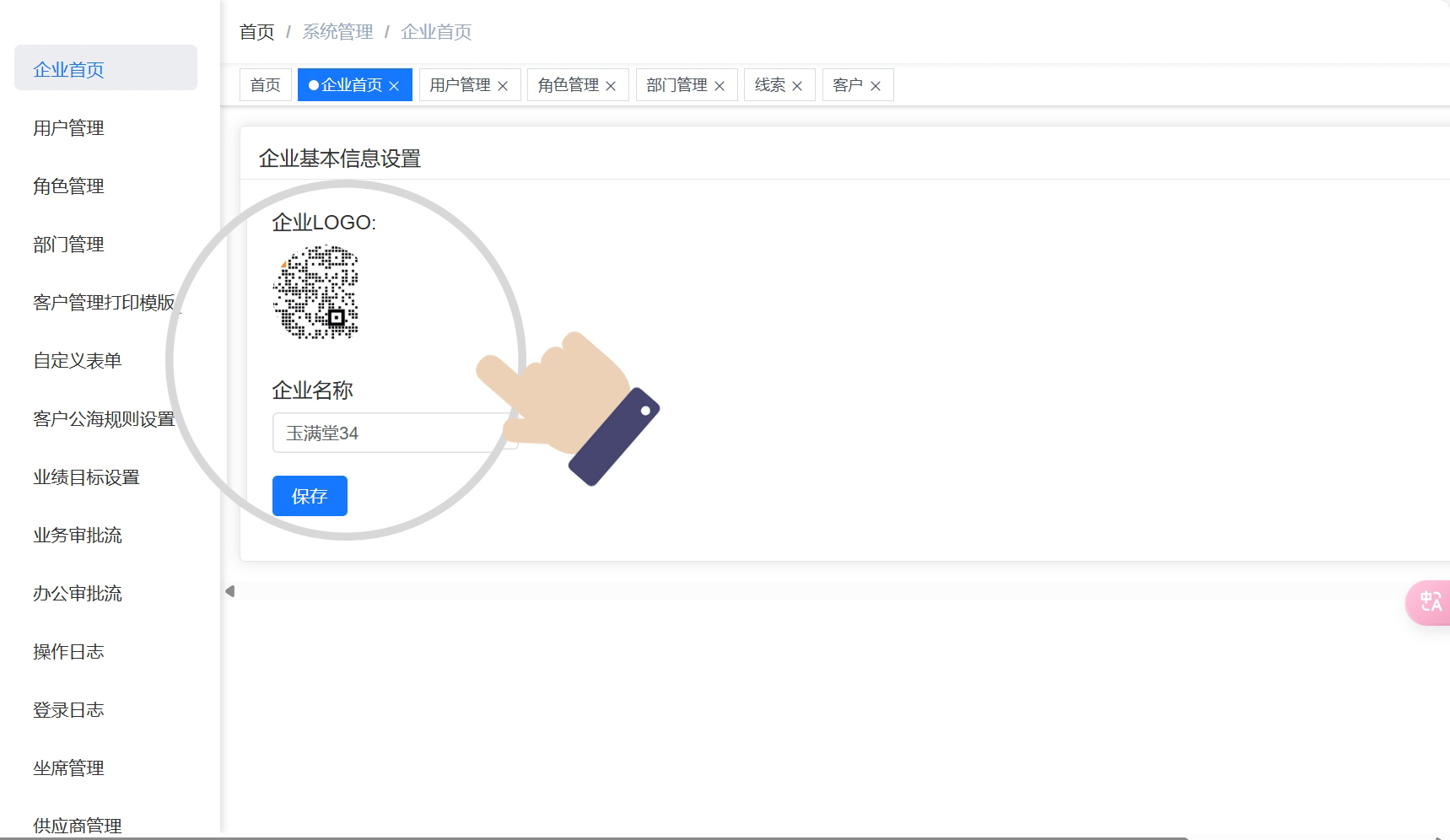 首先注册并登录,接着可以去系统管理设置自己的企业首页,设置自己的企业logo和企业名称。这不仅仅可以强化品牌形象,还能提升辨识度。用户自己设置logo,还能增加一定的归属感。设置自己企业logo也可以增强客户的可信度,会觉得企业非常的可靠。