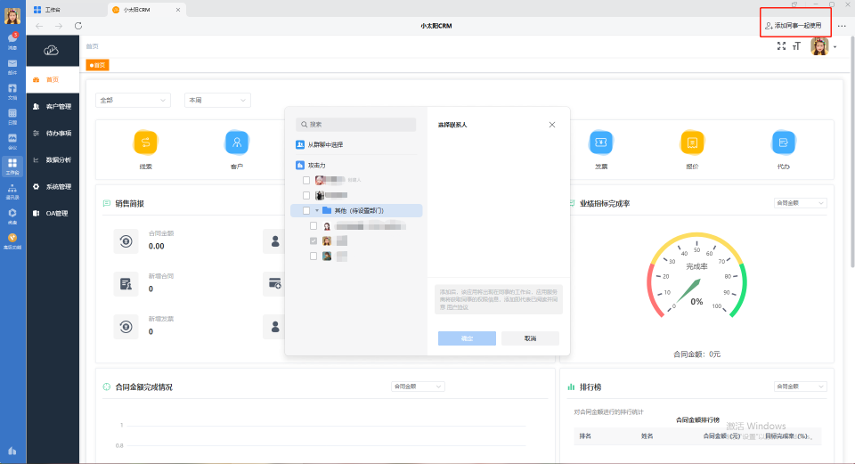 可见范围内的用户,可以在工作台查看小太阳CRM