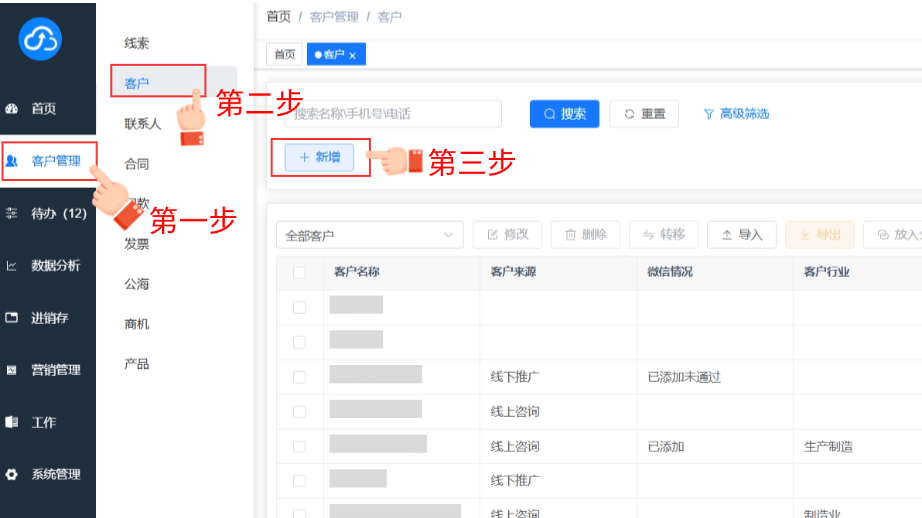 导入:首先先下载《客户导入模板》,在模板里可以填多个客户信息,一键上传,那便可以直接导入系统。
