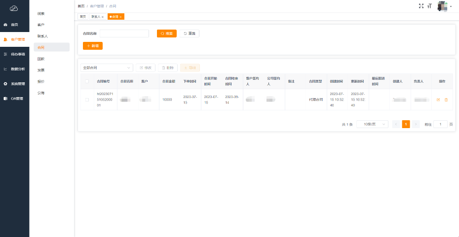 4.1基础功能:新增/修改/删除合同信息,用户只可以查看当前账号数据权限下的合同数据